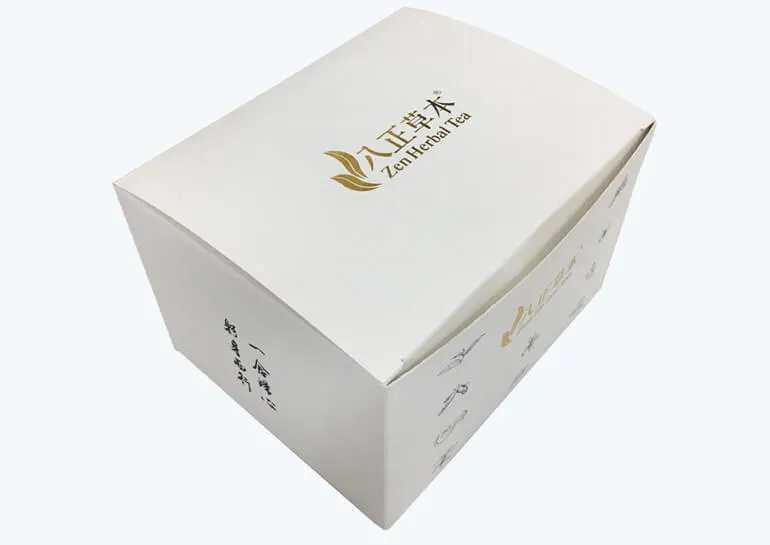 El equipo de Shanghai Box Packing Solution es un fabricante profesional y confiable de China de cajas de embalaje para té; nuestros materiales se aplican a las bolsitas de té, tanto cartón blanco virgen como cartón dúplex. La diferencia es que el cartón blanco virgen tiene un grosor de solo 0,35 mm a 0,46 mm para un embalaje sencillo, y se necesita un paquete exterior si deseas enviarlos. Mientras que la caja de cartón dúplex (caja rígida para té) se utiliza principalmente en productos de té de alto valor agregado, tiene un aspecto más profesional y de alta calidad. Depende de ti seleccionar el material, y puedes pedir a nuestro equipo de ventas que te brinde el mejor consejo basado en años de experiencia.