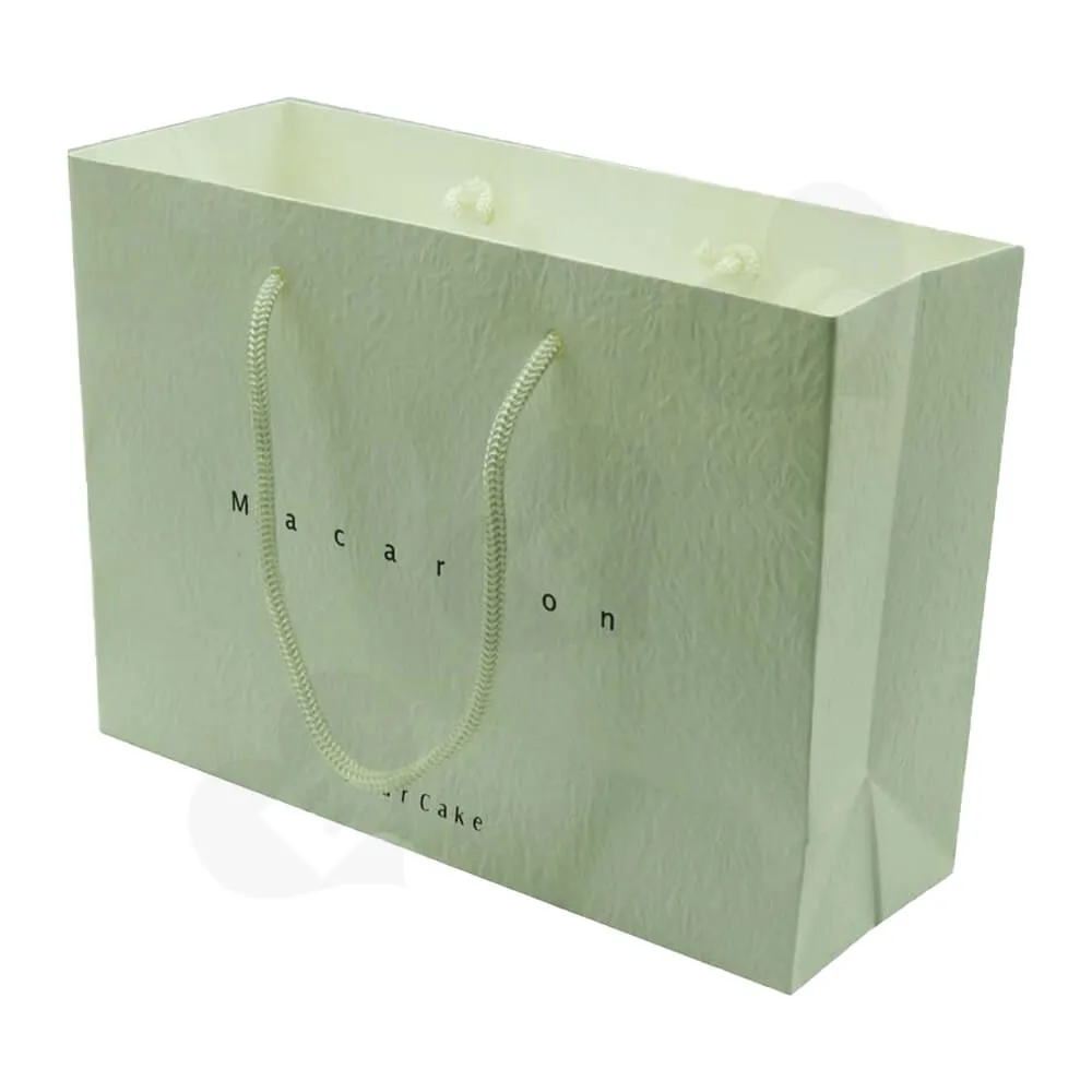 También ofrecemos bolsas de papel en varios colores. El material es un papel con textura especial que hace juego con la caja de regalo. Las asas también son de nailon de color verde claro. El efecto general es elegante y único. Los clientes estarán felices de caminar por la calle llevando este tipo de envases artísticos.
