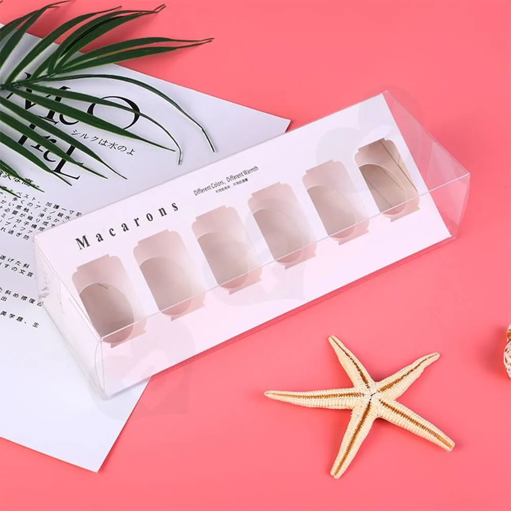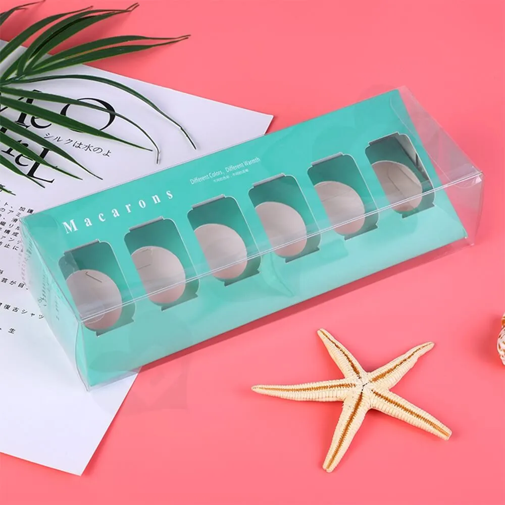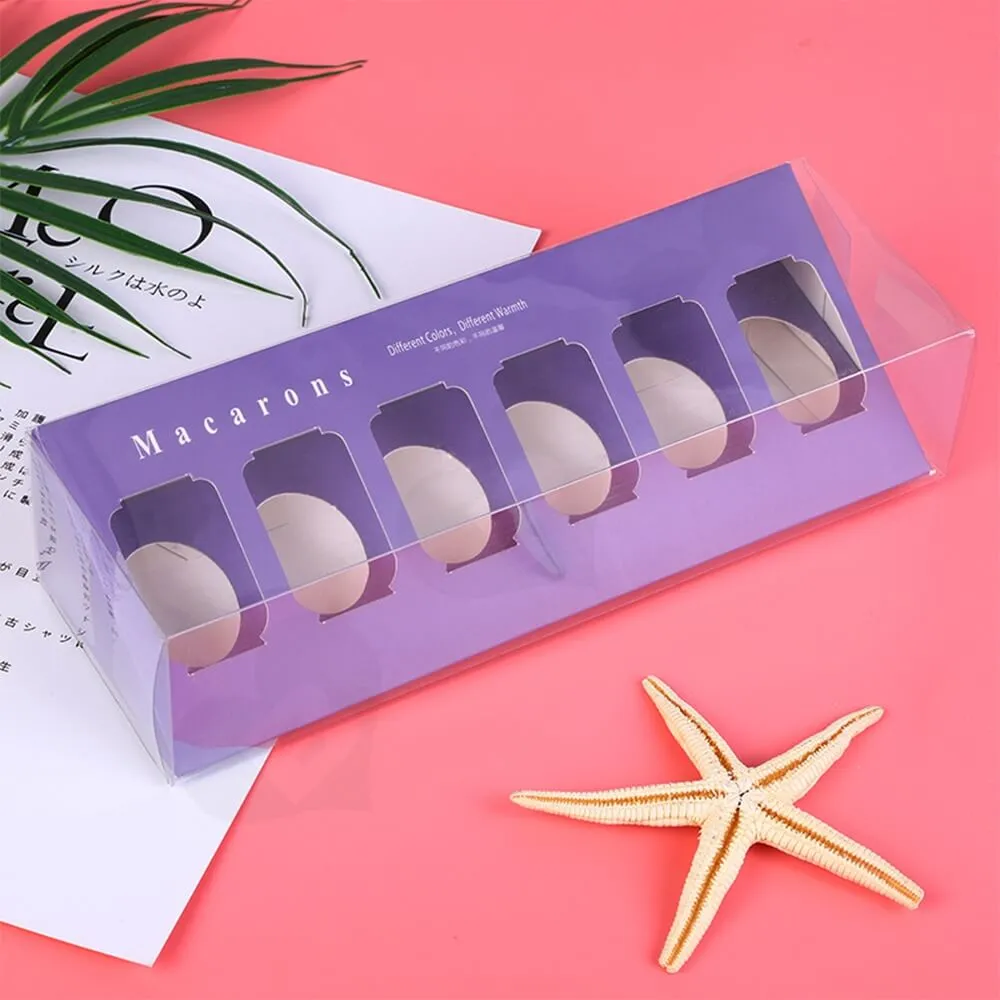 La caja solía empaquetar Macarons de seis piezas y una bandeja tipo blíster de PVC transparente para guardarlos.