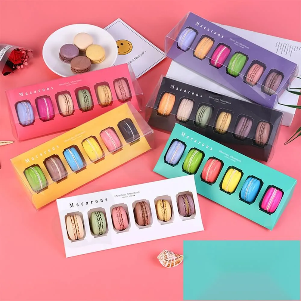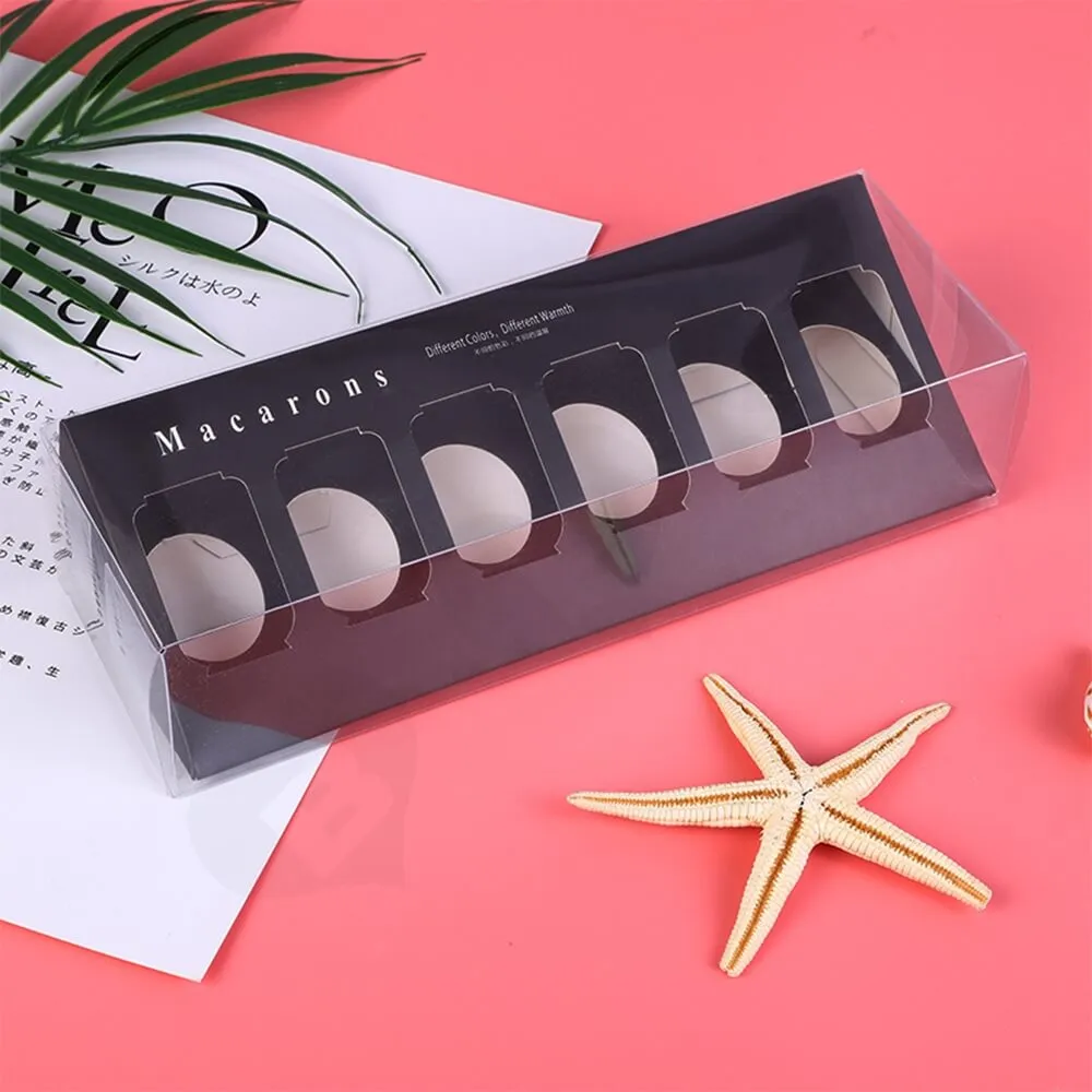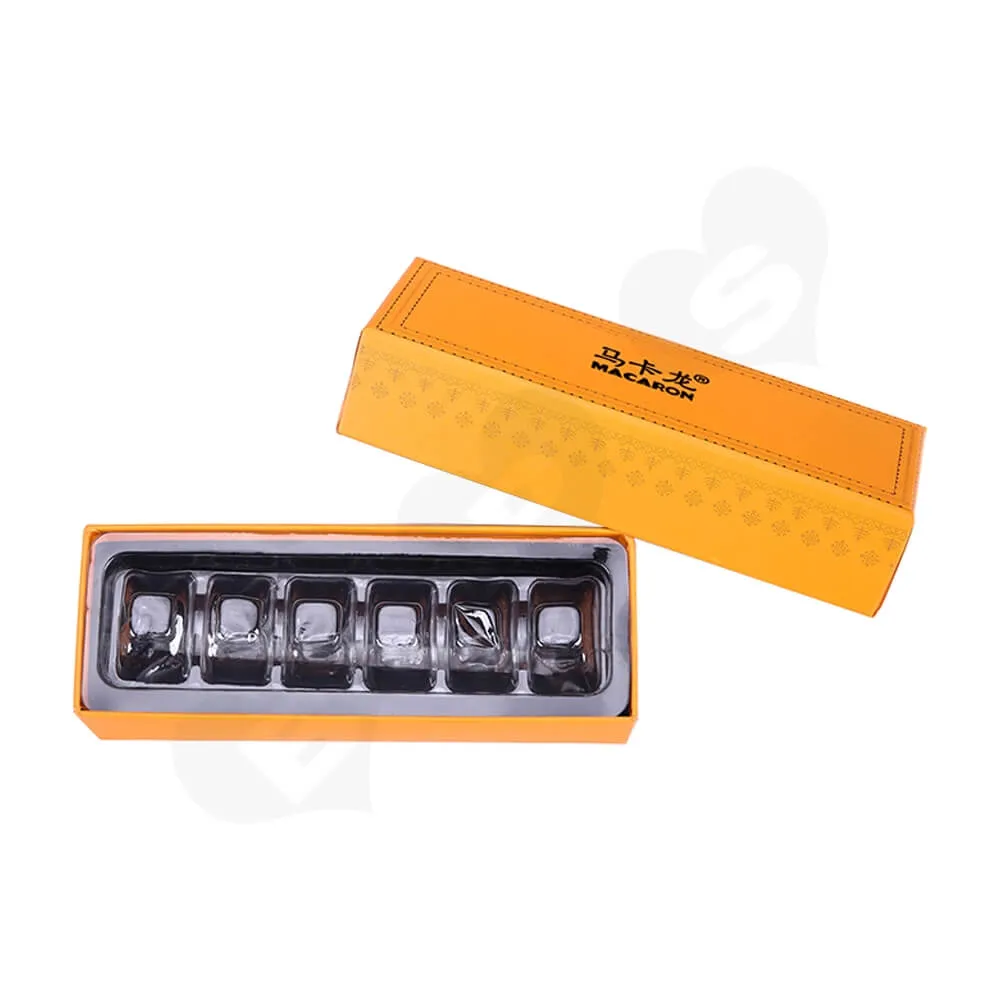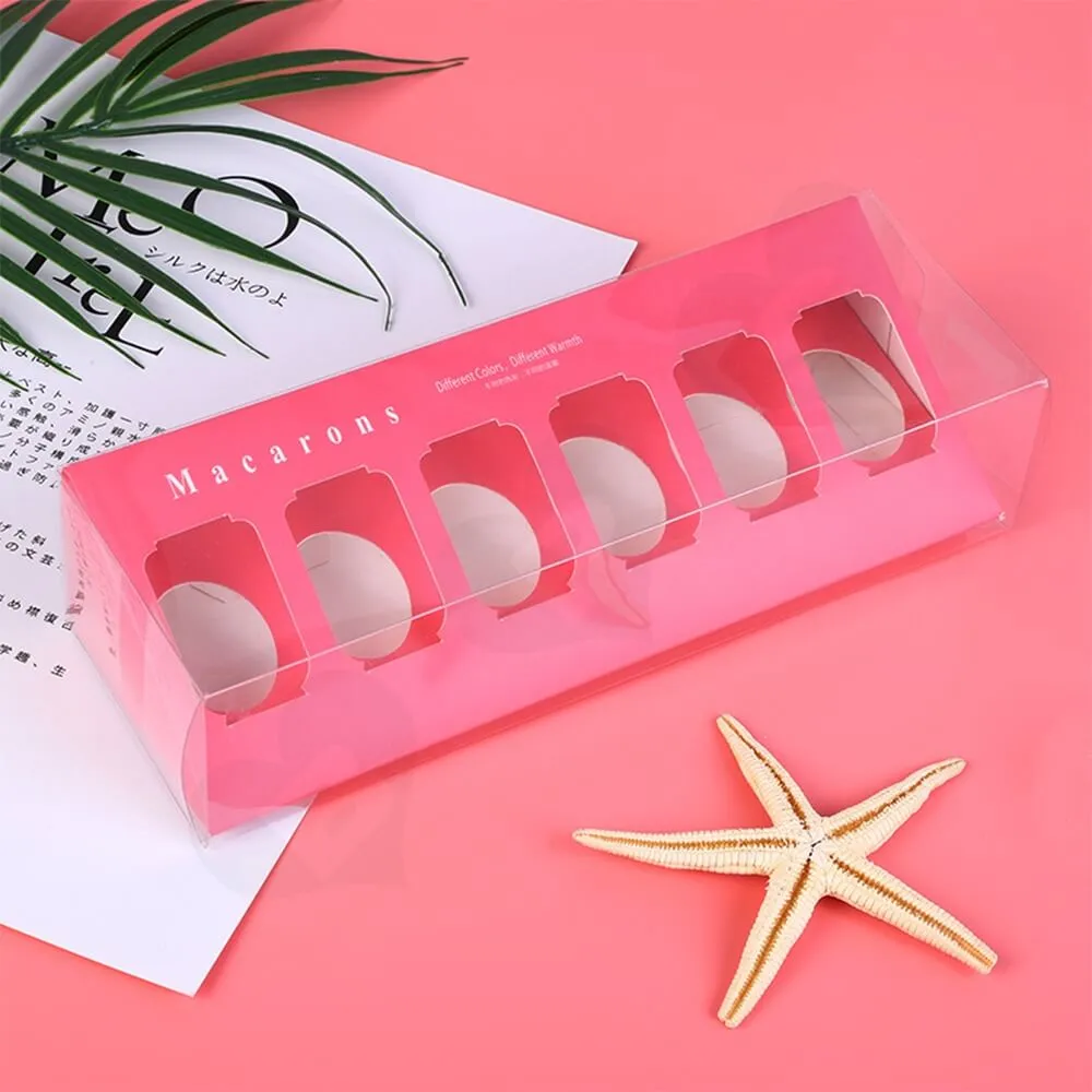 La caja solía empaquetar Macarons de seis piezas y una bandeja tipo blíster de PVC transparente para guardarlos.
