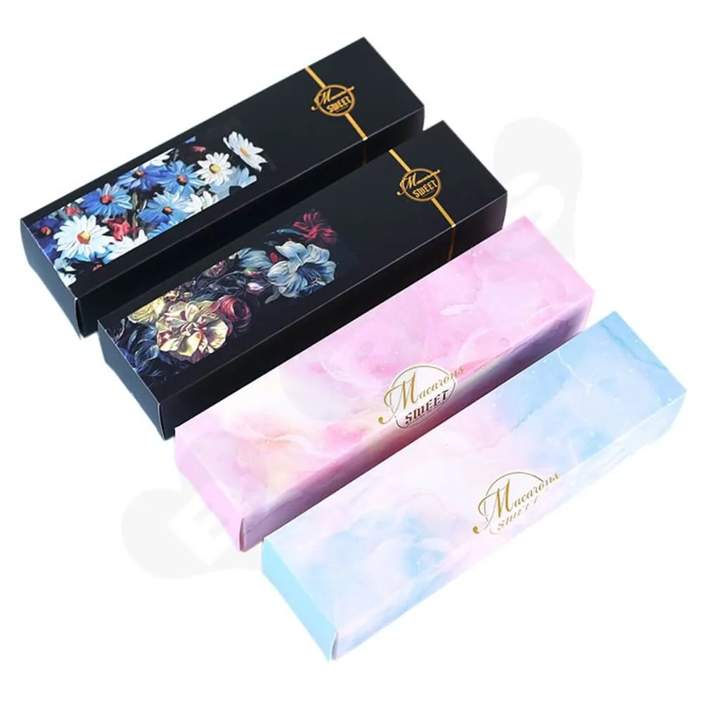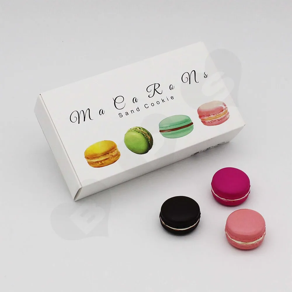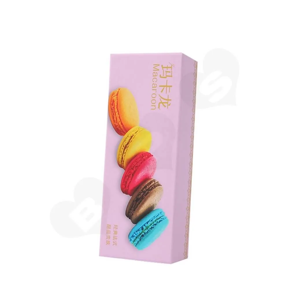 Fabricada con cartón de 2 mm de grosor, la caja es sustancial cuando te das cuenta de que se trata simplemente de un embalaje ligero de Macaron. Un buen embalaje aporta valor al producto, y el objetivo se puede conseguir utilizando la caja de cartón rígido.