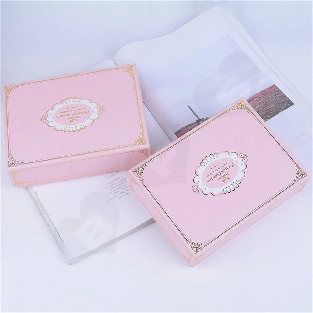 Esta caja de regalo es blanca por fuera y rosa por dentro, lo que la hace fresca y hermosa. El material exterior de la caja es un tablero gris de 2 mm de espesor y el cartón está laminado con un papel especial texturizado, que es sedoso al tacto.
