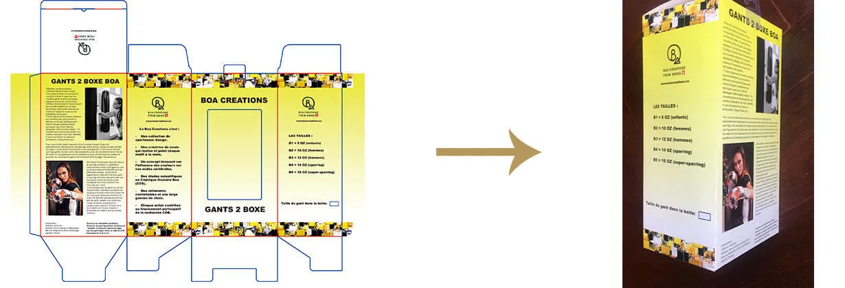 Certaines structures donnent une apparence étrange et vous avez du mal à deviner sa structure. Ce qu’il faut faire? Dépliez-le ! Dépliez une boîte, aplatissez-la et déchirez la zone de colle (certaines structures n’ont pas de zone de colle, par exemple une boîte d’expédition pliante). Ensuite, vous pouvez voir comment cette boîte est pliée, prendre une photo et l’envoyer à votre fournisseur, qui vous aidera. S’entraider est si important, vous a-t-on déjà demandé de prendre une photo de l’emballage ou d’envoyer un dessin à plat par votre fournisseur ? Les deux boîtes de conditionnement d’aspect identique peuvent avoir deux structures de boîtes différentes. Il en va de même pour les sacs en papier. La structure des sacs est beaucoup plus simple que celle des boîtes en carton.