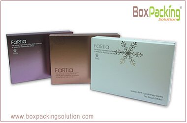 Caractéristiques : le coffret cadeau a un aspect élégant avec des couleurs éblouissantes, une rigidité de surface, un toucher fin et une bonne résistance aux chutes. La série FaRTIa de coffrets cadeaux pour costumes cosmétiques utilise une combinaison de carton doré et argenté avec impression UV pour créer un emballage noble et facile à utiliser. L’emballage de la boîte-cadeau en or et en argent est préféré par la plupart des gens. Par exemple, le coffret cadeau d’huiles essentielles FaRTIa est en carton argenté et imprimé UV. La partie motif neige du papier est dans la couleur d’origine, tandis que la partie blanche de la boîte est imprimée. Il est important de noter que la couleur imprimée sur du carton doré et argenté diffère considérablement de la couleur imprimée sur du papier d’impression blanc ordinaire, et cela doit être pleinement pris en compte lors du processus de conception. La boîte à cartes dorée et argentée est souvent utilisée par des marques de cosmétiques haut de gamme telles que HR, Estee Lauder et d’autres pour des emballages personnalisés. De plus, il convient de mentionner que les cartes or et argent ne sont que le nom générique du papier et que la série de couleurs de papier ne se limite pas à l’or et à l’argent. L’utilisation de cartes de couleur or et argent ajoute non seulement une atmosphère de noblesse, mais montre également les différentes personnalités du produit et de la marque qui le sous-tend.